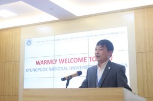 Đoàn KNU do GS. SONG SEOKMIN, Giám đốc Văn phòng Hợp tác Quốc tế (OIA) của KNU, làm trưởng đoàn. Cùng đi có Bà PARK YUJIN, Điều phối viên OIA, và Bà PARK EONJU, Phiên dịch viên.