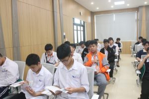 • 14:30 – 15:30: Lễ đón tiếp chính thức do Hiệu trưởng ICTU chủ trì. Hai bên đã lần lượt giới thiệu về Trường Đại học Công nghệ Thông tin và Truyền thông (ICTU) và Trường Đại học Quốc gia Kyungpook (KNU). Đặc biệt, KNU đã giới thiệu các chương trình hợp tác song phương, chương trình liên kết, chương trình trao đổi sinh viên, học bổng Thạc sĩ (MA)các khóa học hè dành cho sinh viên và học viên.