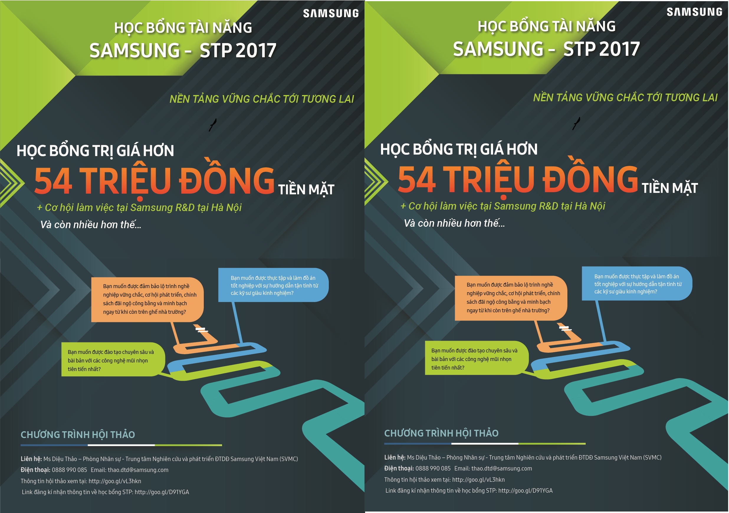 “HỌC BỔNG TÀI NĂNG SAMSUNG – STP 2017” do Khoa CNTT kết hợp cùng Samsung tổ chức đã trở lại. Download file Thông tin chi tiết 1: Thông tin Học bổng tài năng Samsung STP 2017, Download file Thông tin chi tiết 2: Học bổng tài năng...