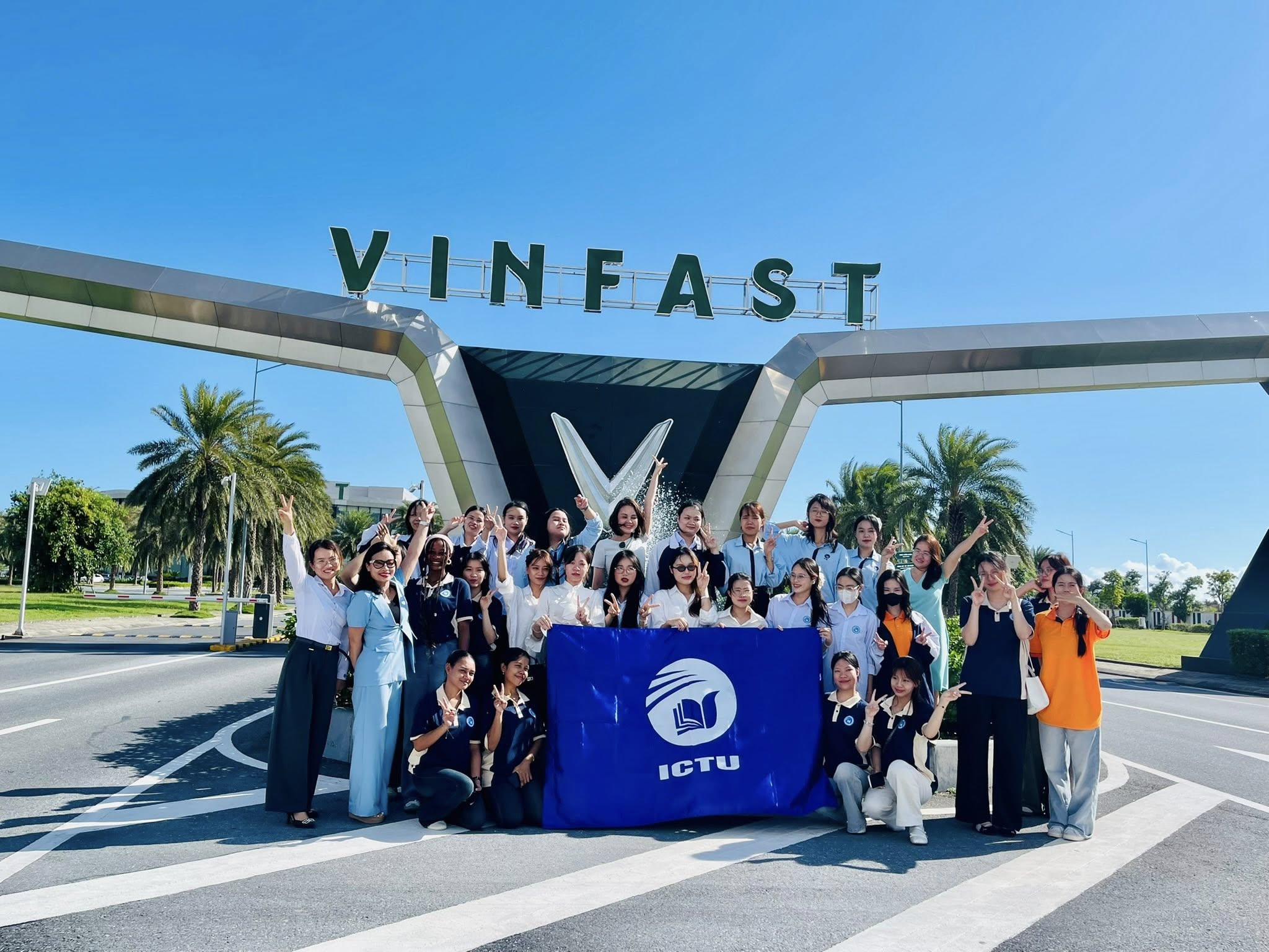 On October 3, 2025, female students from the International Training Institute (ITI) of the Thai Nguyen University of Information and Communication Technology (ICTU) participated in a practical field trip and talk show at the VinFast Automobile Factory in Hai Phong.